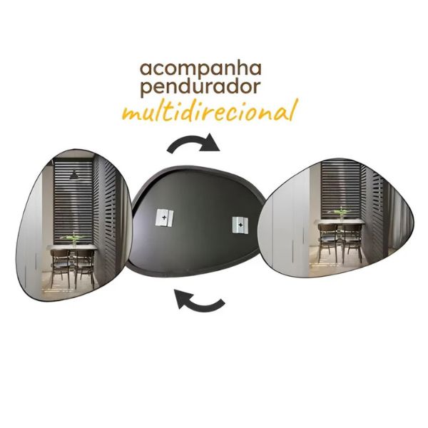 Pode se utilizado na horizontal, vertical ou no ângulo que você preferir, basta ajustar os fixadores. Utilizável em quartos, banheiros, salas, cozinhas ou hall, o espelho traz uma sensação de amplitude e sofisticação, harmonizando à decoração existente.