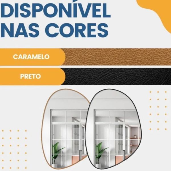 Design exclusivo, estética moderna, este espelho não é apenas um objeto funcional, mas também uma peça de arte decorativa. Acabamento em couro ecológico reforça o compromisso com a sustentabilidade e adiciona uma textura rica e um visual sofisticado.