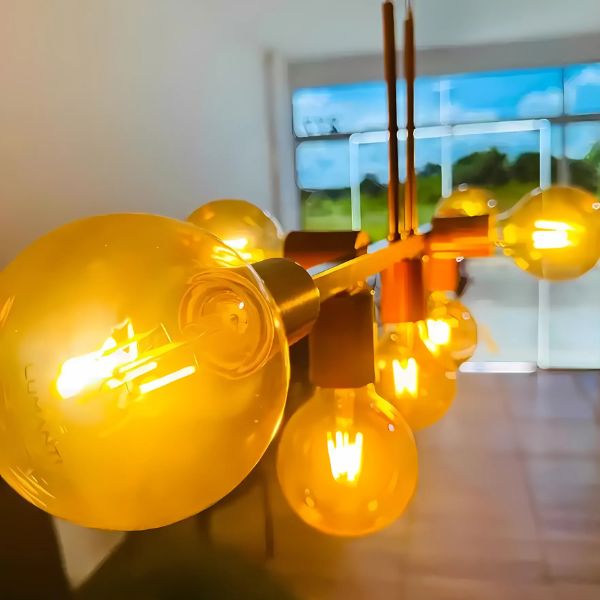 Com um design inovador e elegante, este lustre possibilita usar luzes de LED que proporcionam uma iluminação uniforme, suave e aconchegante, trazendo modernidade e estilo para seu ambiente.