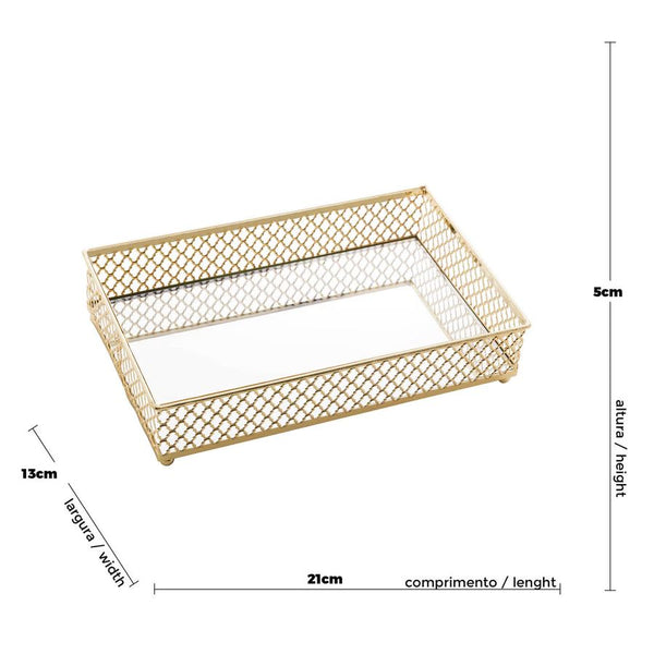 Por que escolher a Bandeja de Vidro com Fundo Espelhado? Base espelhada que amplia a luz e valoriza os objetos Design elegante com estrutura metálica resistente Tamanho ideal para composições decorativas ou servir Acabamento refinado que combina com ambientes modernos e clássicos Peça versátil para diferentes cômodos da casa