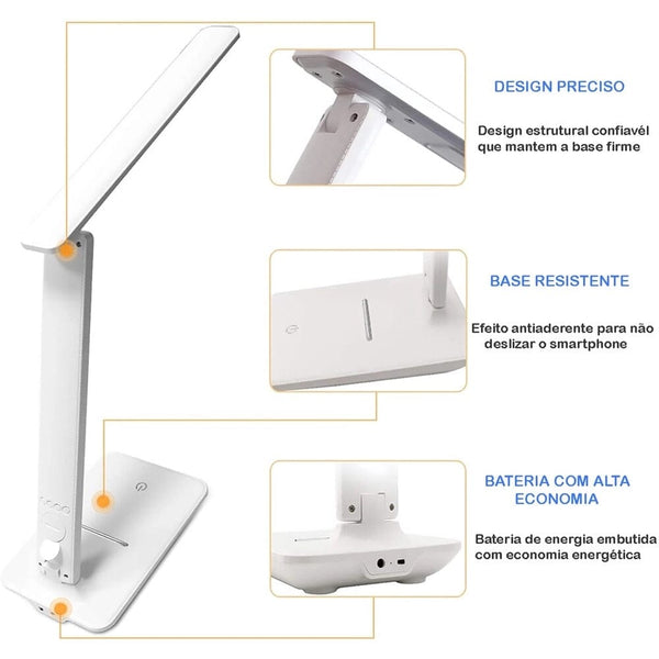 Luminária Abajur Touch Multifuncional Ajustável USB